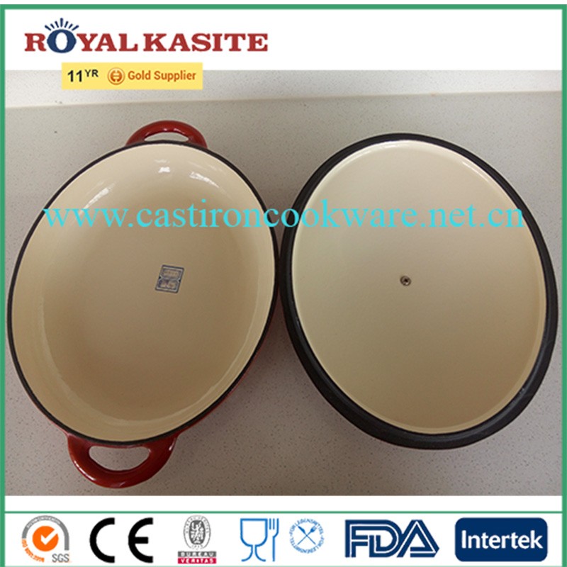 Oval cast iron casserole  with enamel coated for wholesale, oval cookware