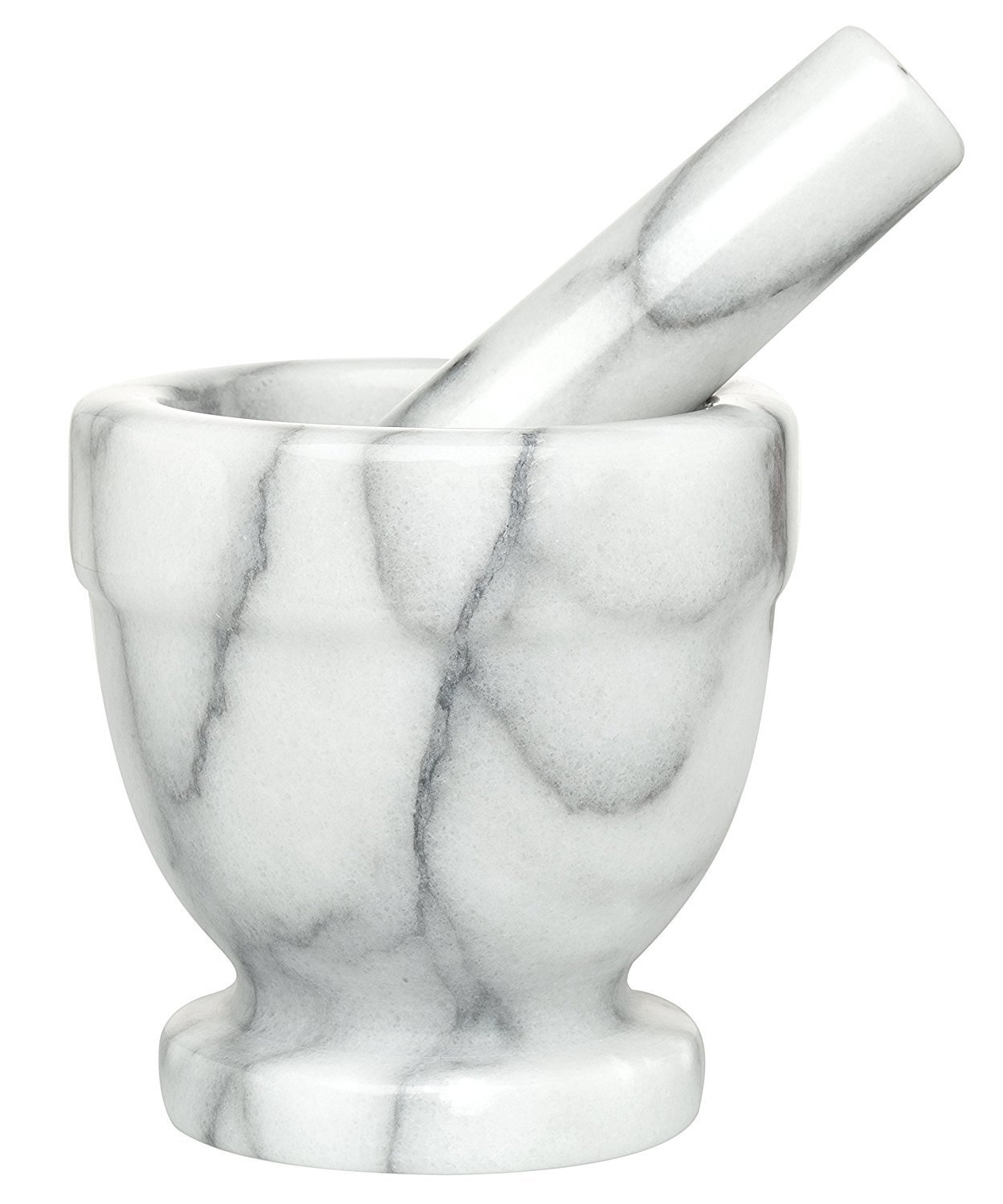 • Made from solid fine-quality Carrara marble; complements any decor; mortar 4 x 4-inches; pestle 5 x 1.25-inches