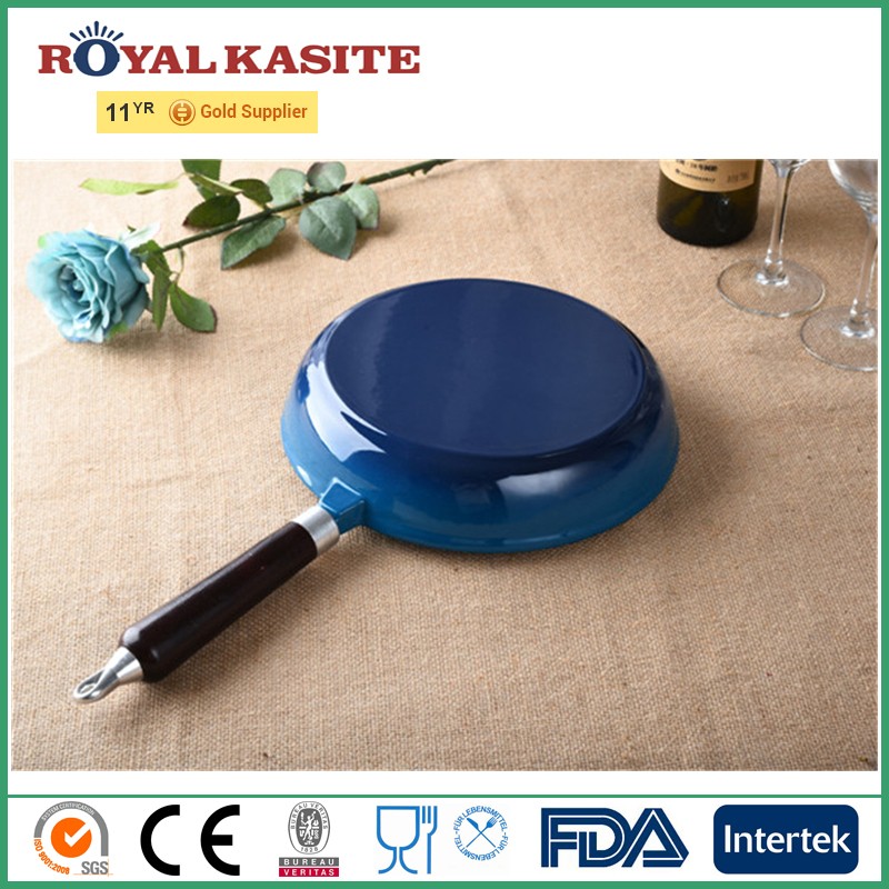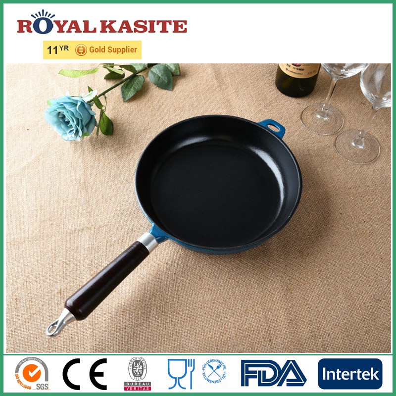 - Pre-season no stick cast iron fry pan with long wooden handle