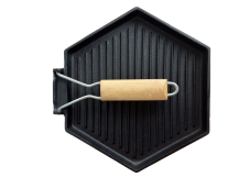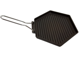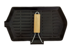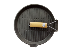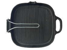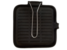 • Cast Iron Grill Pan with ribbed sides and removable handle