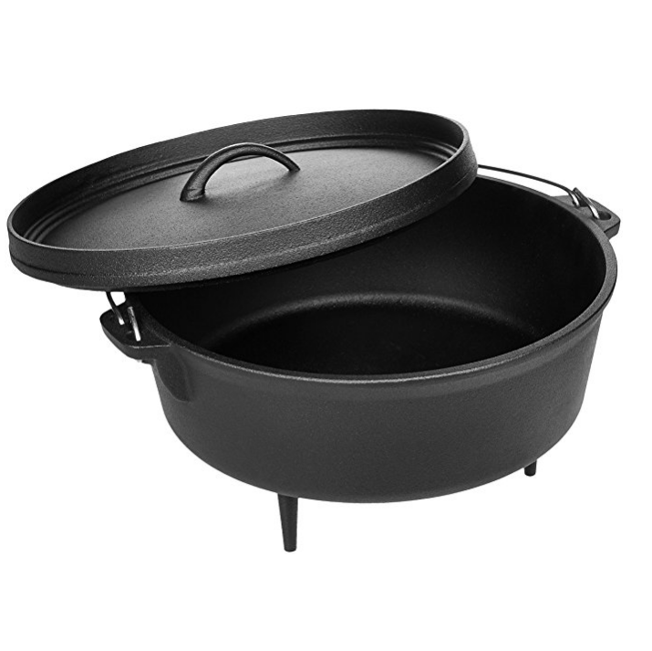 - 6-quart pre-seasoned cast-iron camp Dutch oven for cooking over a campfire or in a fireplace