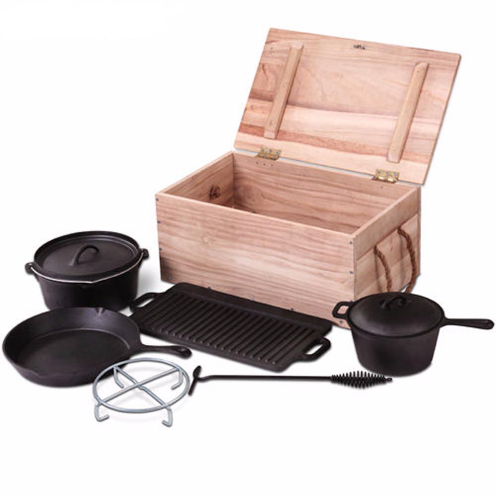 Pre-seasoned cast iron cookware camp dutch oven skillet set