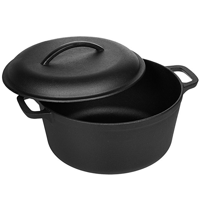 Pre-Seasoned Cast Iron Dutch Oven with Dual Handles 5Quart
