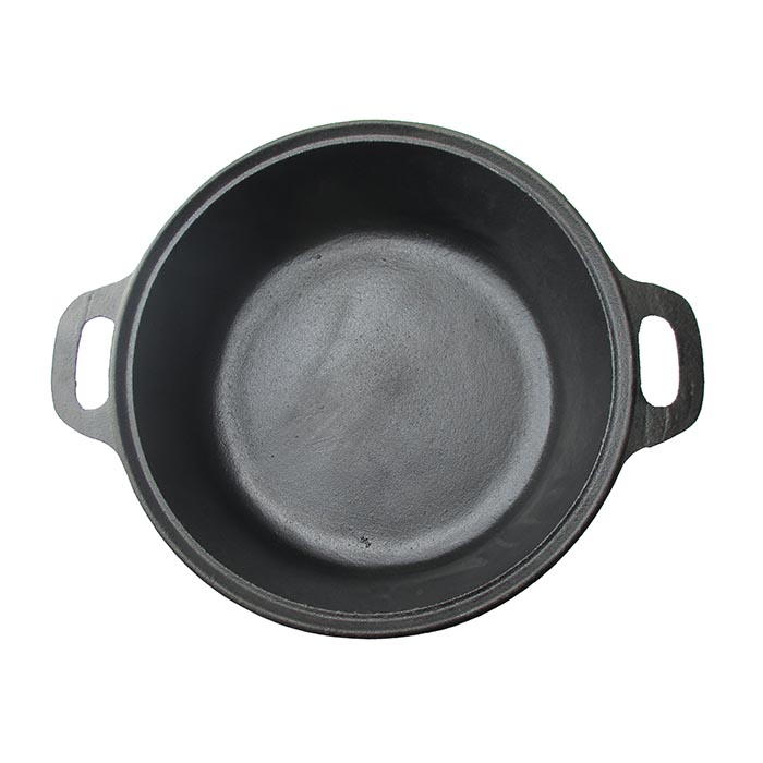 • Cast Iron Dutch Oven include Cast iron pot without feet and cast iron lid which is reversible and a stay cool wire handle