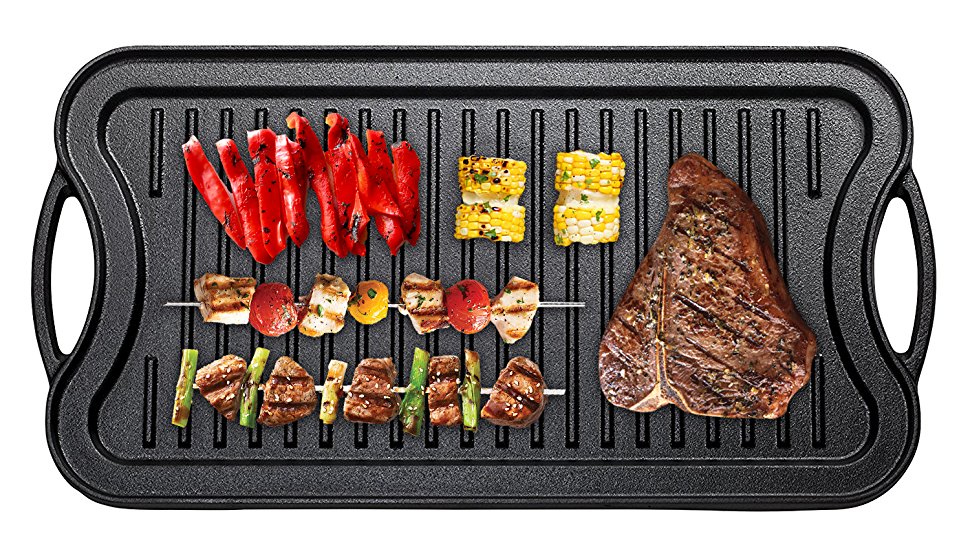 Pre-Seasoned Cast Iron Reversible Grill/Griddle Pan, 20-inch x 10-inch