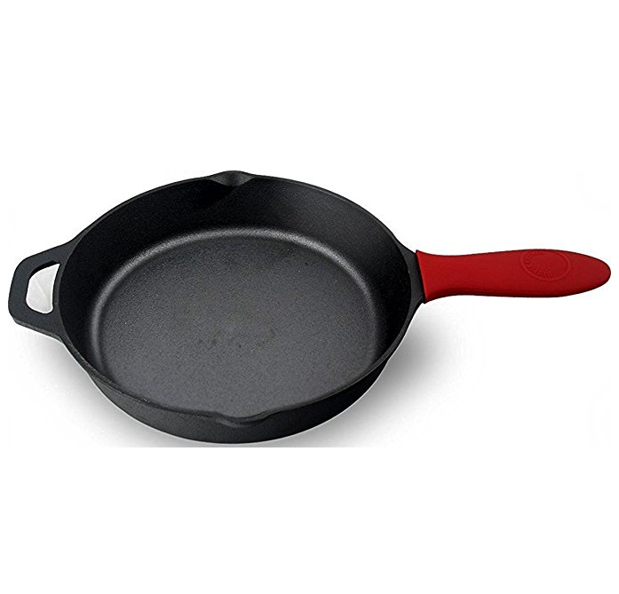 This 12.5 inches skillet pan is suitable for both stovetop and oven for evenly cooking variety of different meals; silicon handle that provides a secure and comfortable grip when handling hot cookware on the stovetop