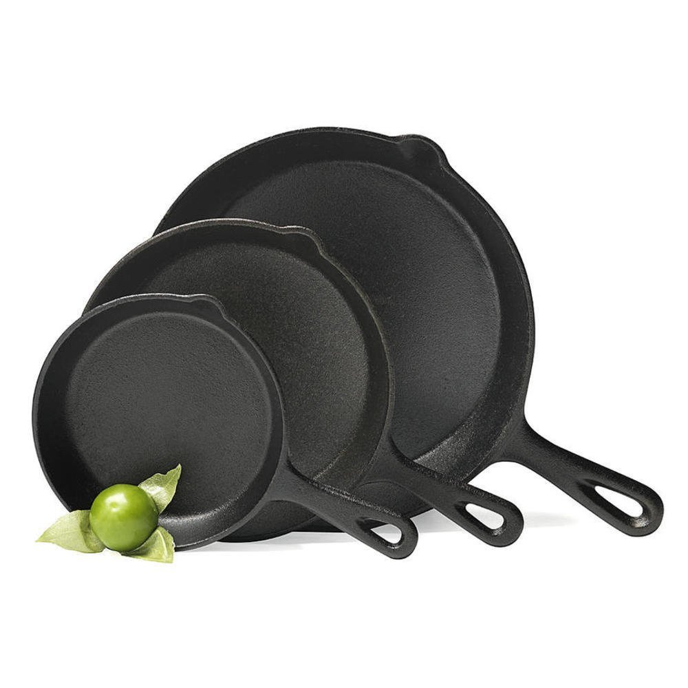 - 3-piece set consists of 6.5-inch skillet, 8-inch skillet, and 10.5-inch skillet