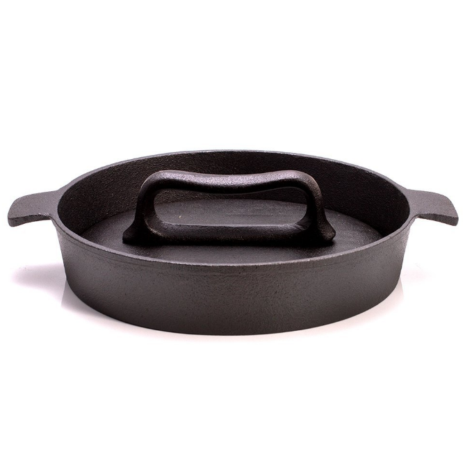 Products:preseasoned cast ironTabaka Chicken pan with grill press cast iron skillet