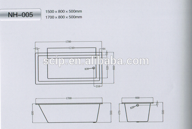 rectangular Drop-in Cast Iron Bathtub 1700*800