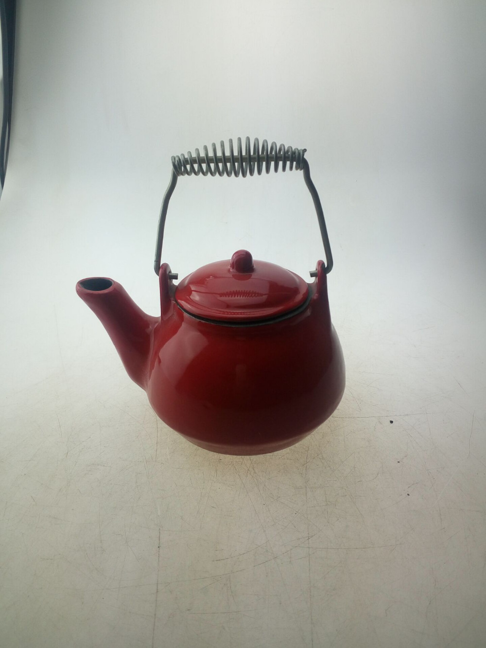red enamel cast iron kettle