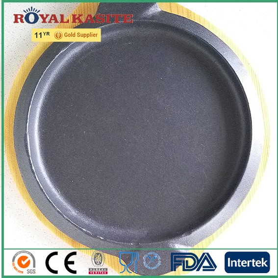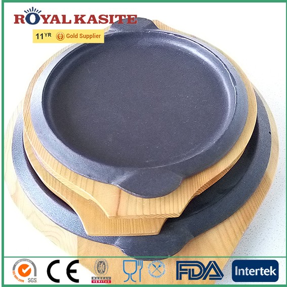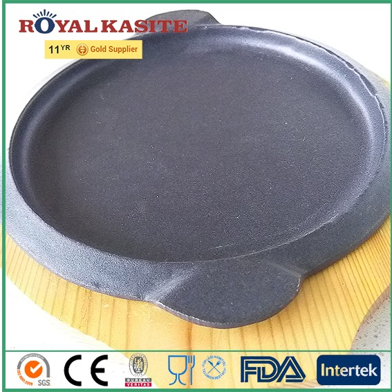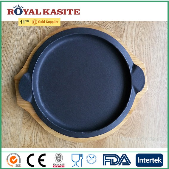 restaurant unique cast iron fry pan, newest style pan, Pizza Pan with wooden tray