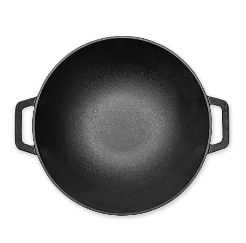 RK Seasoned Wok Cast Iron 14 inch with Handles and flat bottom