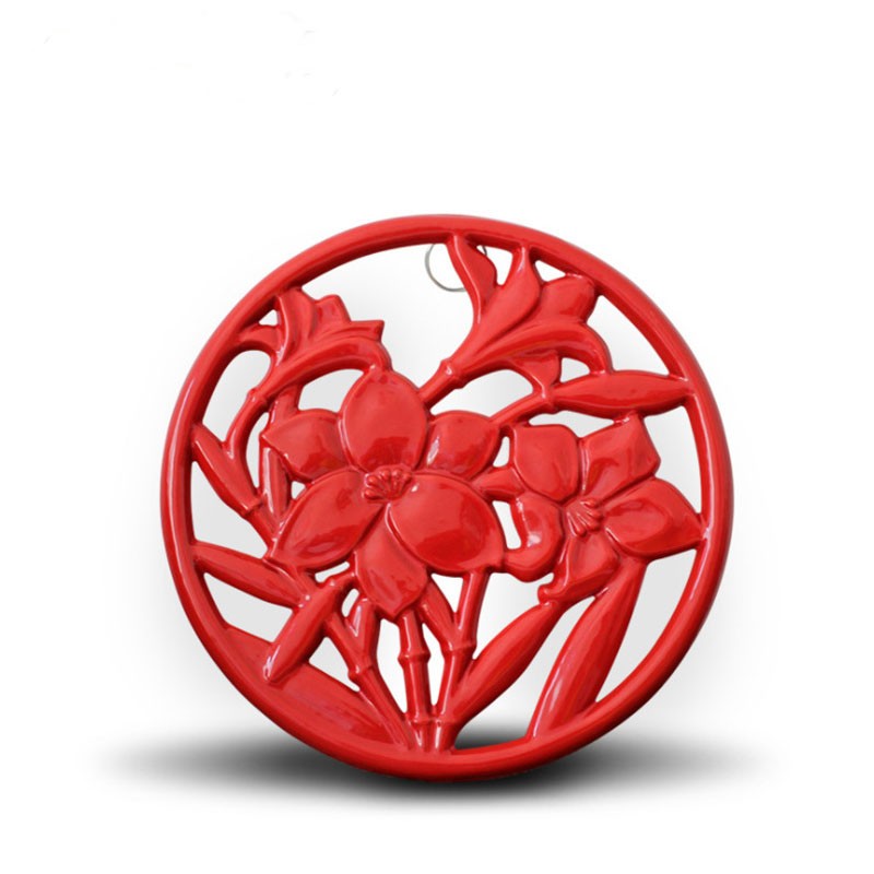 Round Cast Iron Trivet Red for Kitchen Dining Metal Trivets