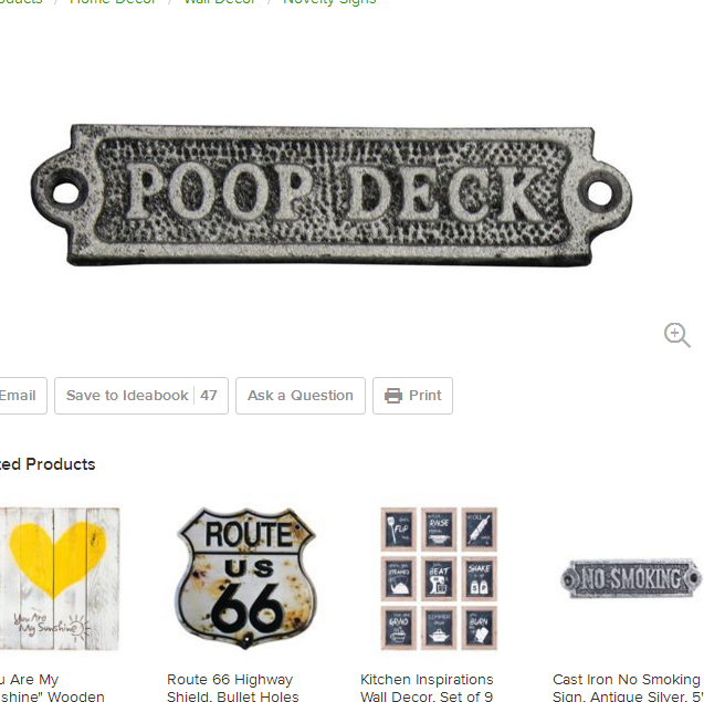 Rustic Silver Cast Iron Poop Deck Sign 6'' Metal Wall Plaque Cast Iron Door