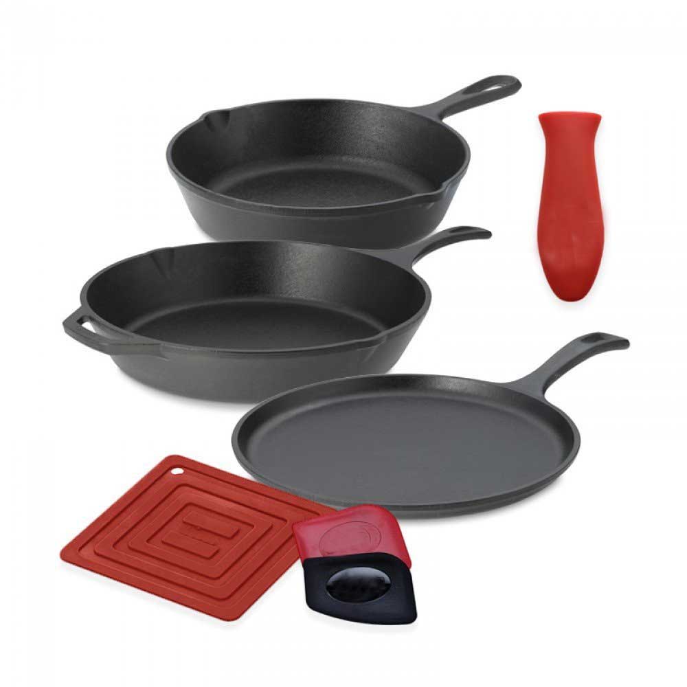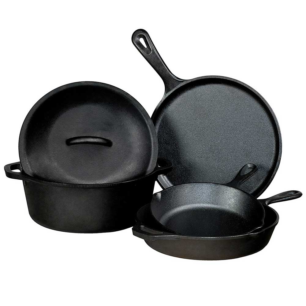 Seasoned Cast Iron 5 Piece Set with 10.5" Griddle, 8" Skillet, 10.25" Skillet, 10.25" Dutch Oven and 10.25" Lid