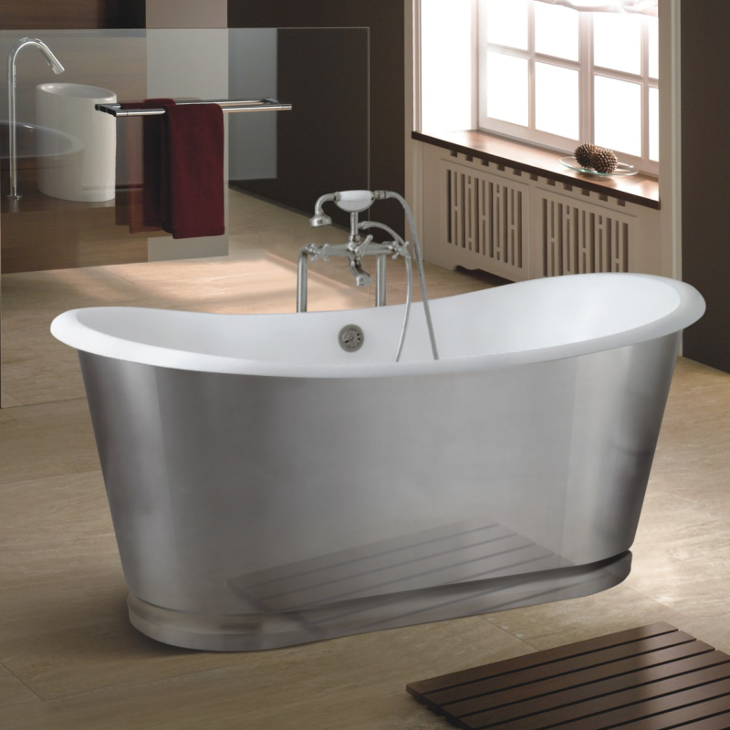 silver indoor freestanding cast iron tub cast iron tub with brushed stainless steel skirt