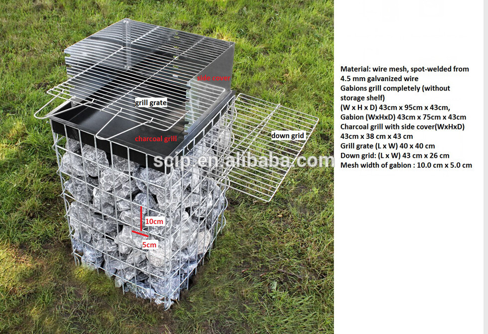 Gabions grill completely (without storage shelf):(W x H x D) 43cm x 95cm x 43cm,