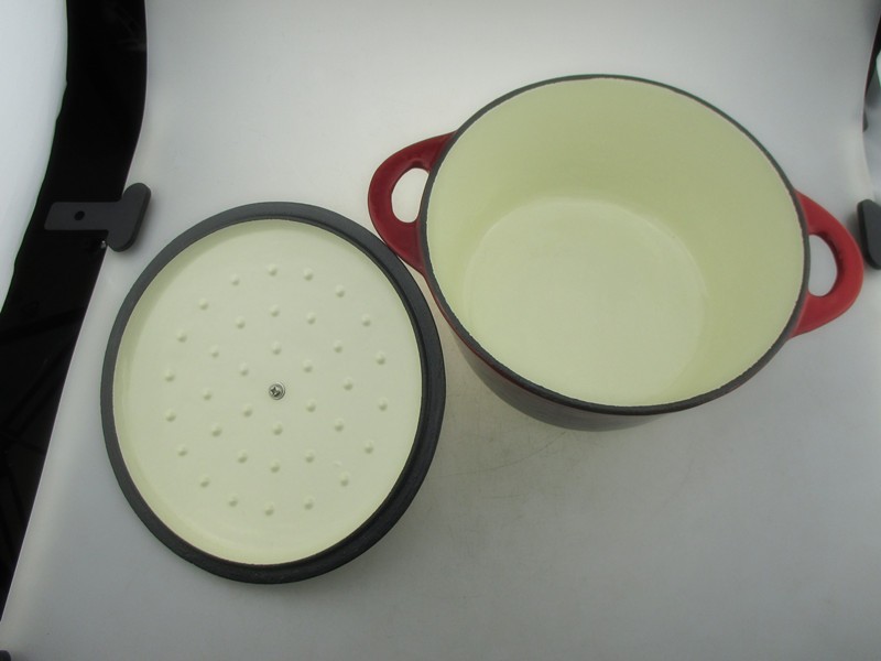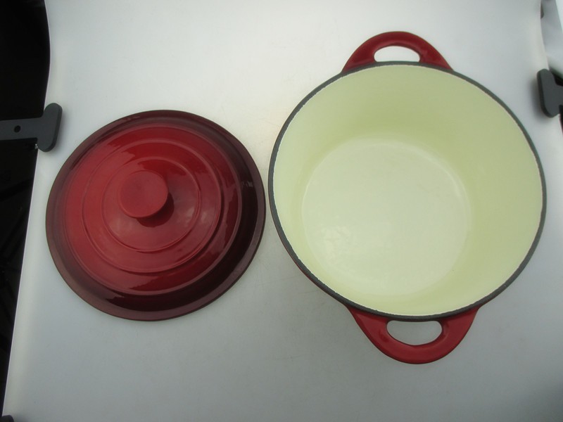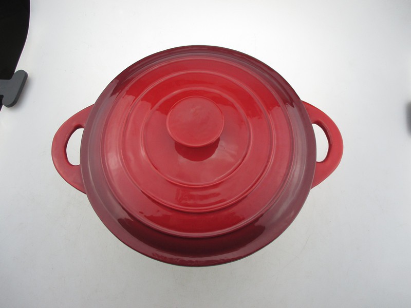 2. மேற்பரப்பில் நீடித்த சிவப்பு மற்றும் கருப்பு நிறம், வெளிர் நிற உட்புற பற்சிப்பி சமையல் உணவுகளை எளிதாக கண்காணிக்கும்.