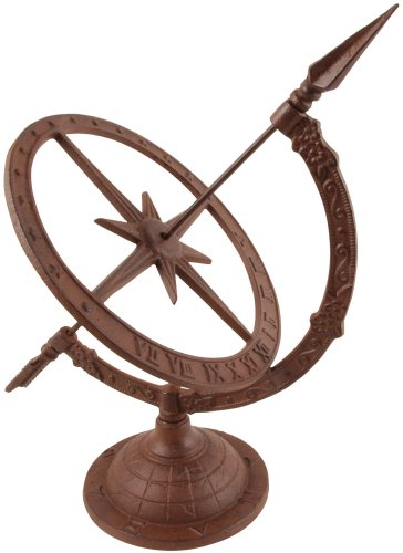 Table Sundial with Cast Iron Stand, Refined Workmanship, Cast Iron Coated, Reddish Brown