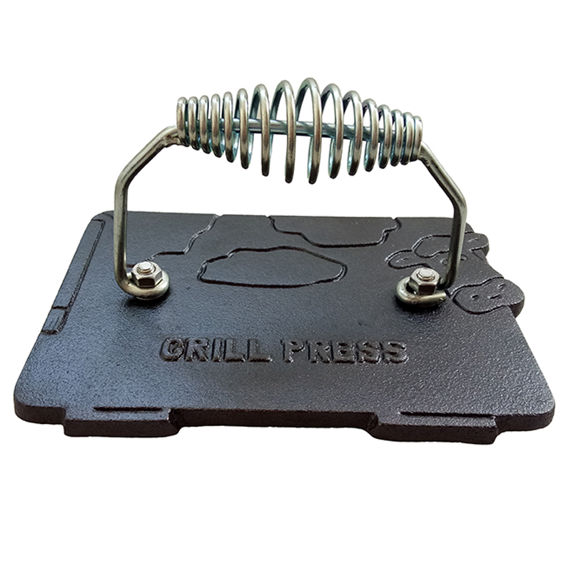 This heavy-duty rectangular steak weight/grill press will make your steaks and other grill favorites cook much faster and easier. It can also be used to eliminate curl and press out unwanted fats.Making sure that food cooks evenly is very important in every kitchen. Ensure that your meats cook evenly by purchasing one of our steak weights. Not only will the food cook faster and more evenly, it will also allow for healthier cooking by squeezing extraneous fat from meat as it cooks. This Cast Iron Meat and Bacon Press is usable in all kitchens: gas, electric, induction, campfire, grill etc.