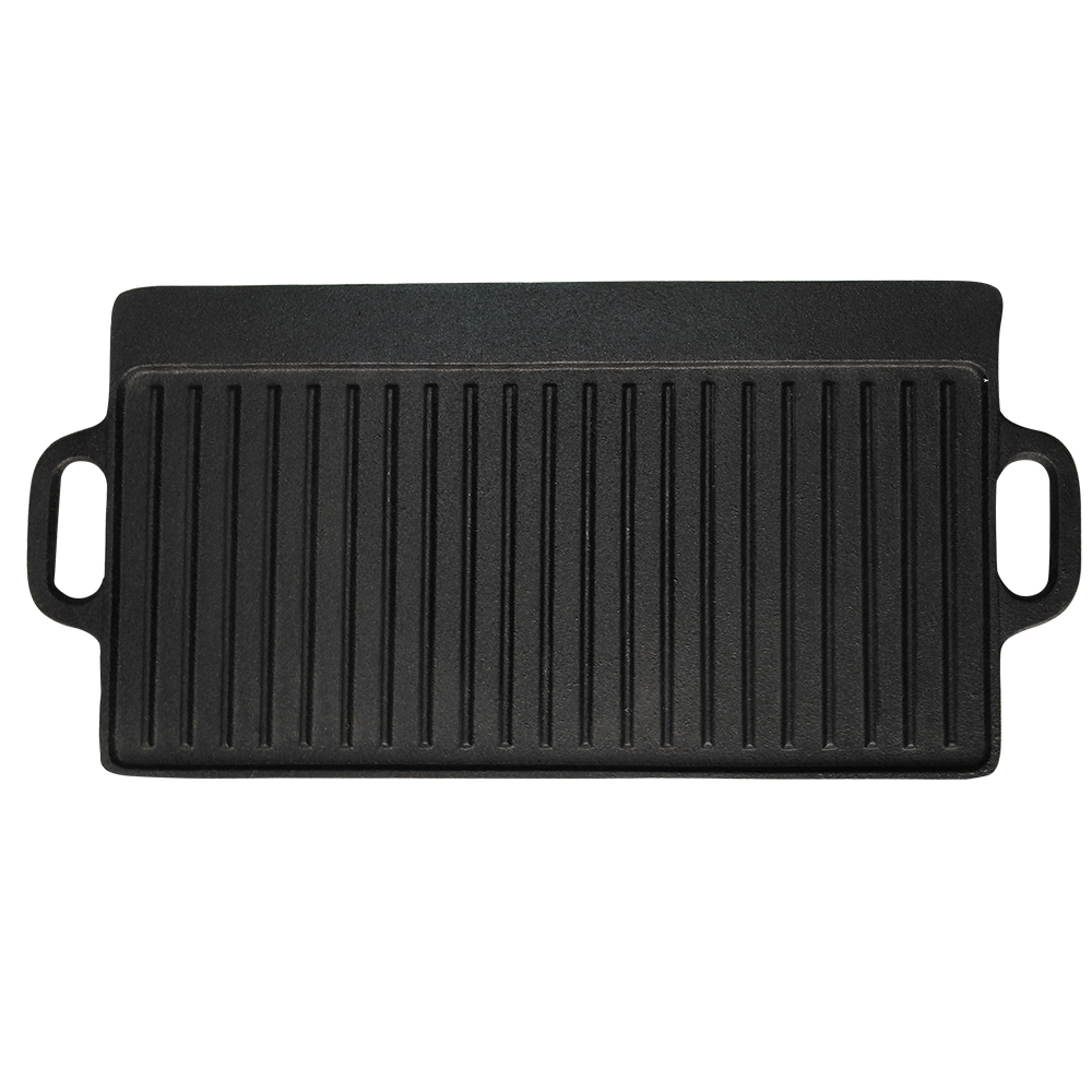 4. استعمال کے بعد صفائی: ریورس ایبل کاسٹ آئرن گرڈل کو ٹھنڈا ہونے دیں۔ گرم ریورسبل کاسٹ آئرن گرڈل کو ٹھنڈے پانی میں رکھنے سے لوہے کو نقصان پہنچے گا اور یہ ٹوٹنے یا پھٹنے کا سبب بن سکتا ہے۔ برش اور گرم پانی سے دھو لیں۔ صابن یا صابن کا استعمال نہ کریں۔ کاسٹ نہ دھوئے۔
