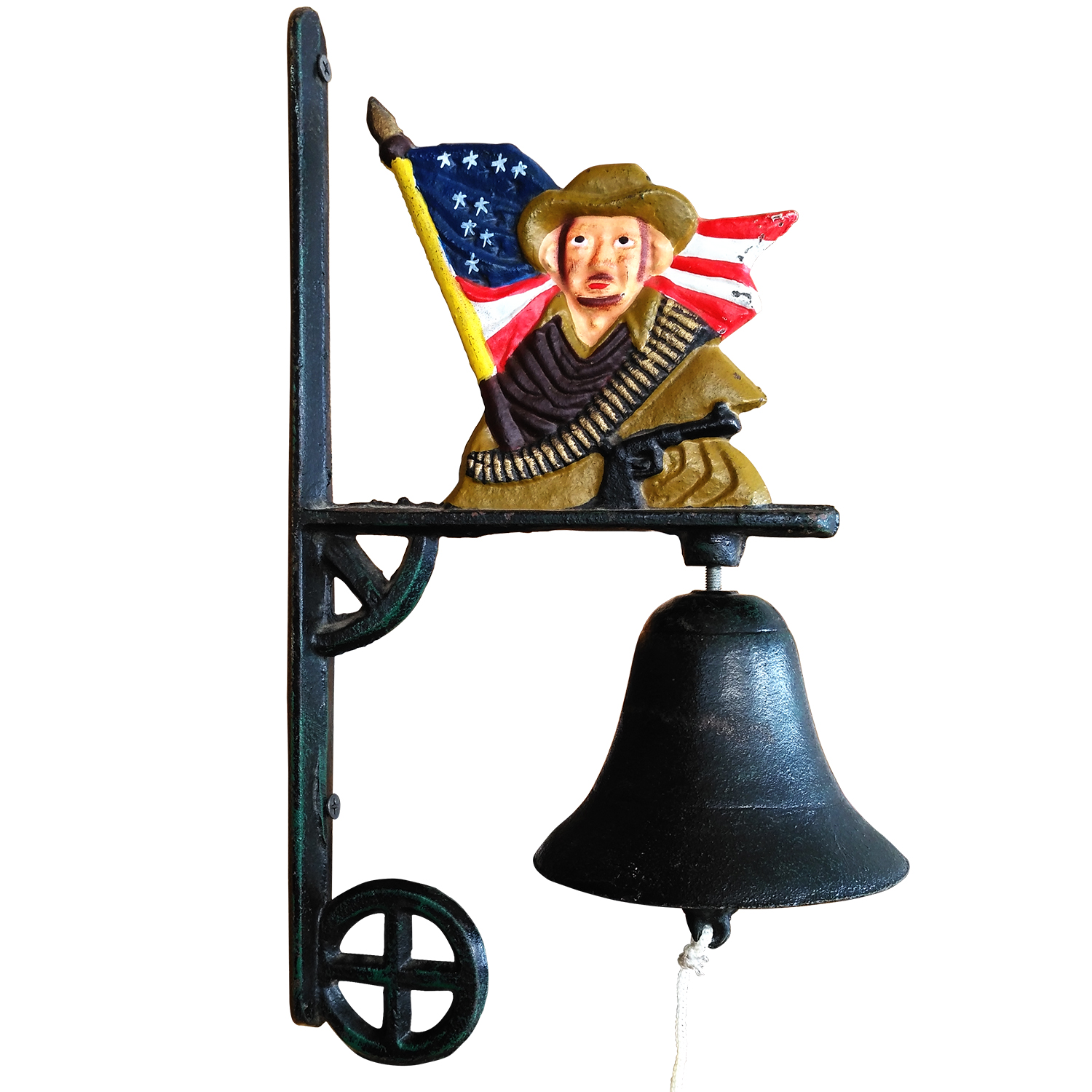 Wholesaler antique Gardon farm hand-painted cast iron dinner bell, USA flag