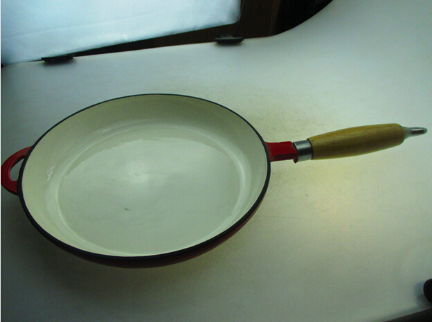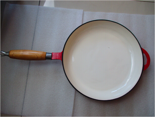 Products :wood handle round enameled cast iron fry pan cast iron skillet cast iron set