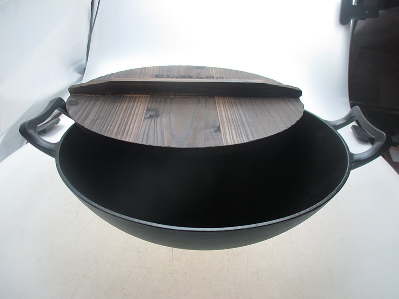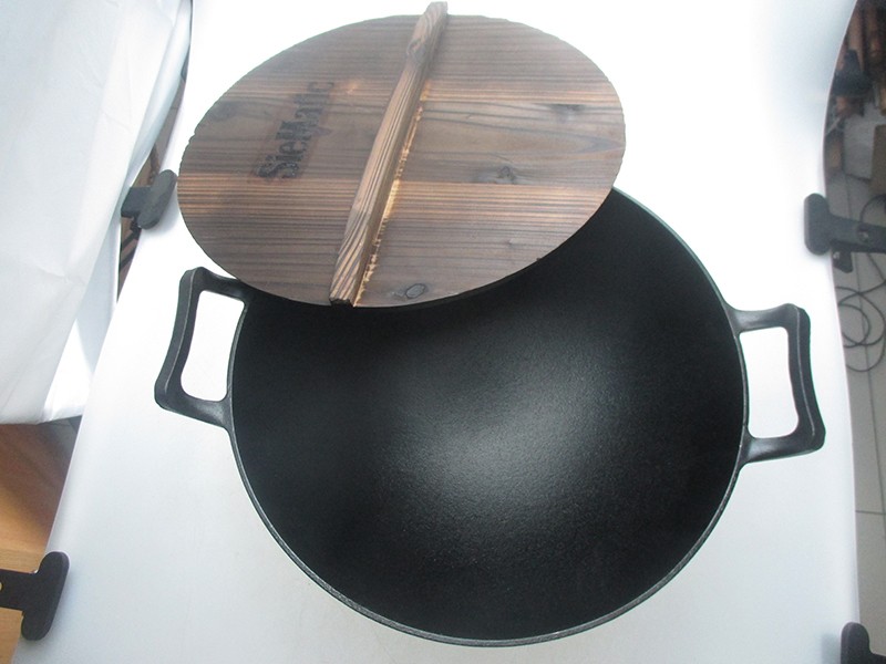 Wooden Lid Preseasoned Chinese Cast Iron Wok